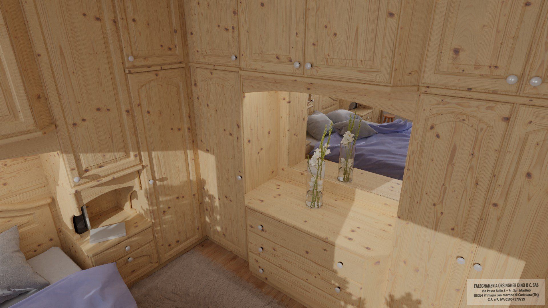 All'interno degli armadi è possibile scegliere tra scaffali regolabili in altezza, tubo appendiabiti, cassetti interni di varie altezze e larghezze.